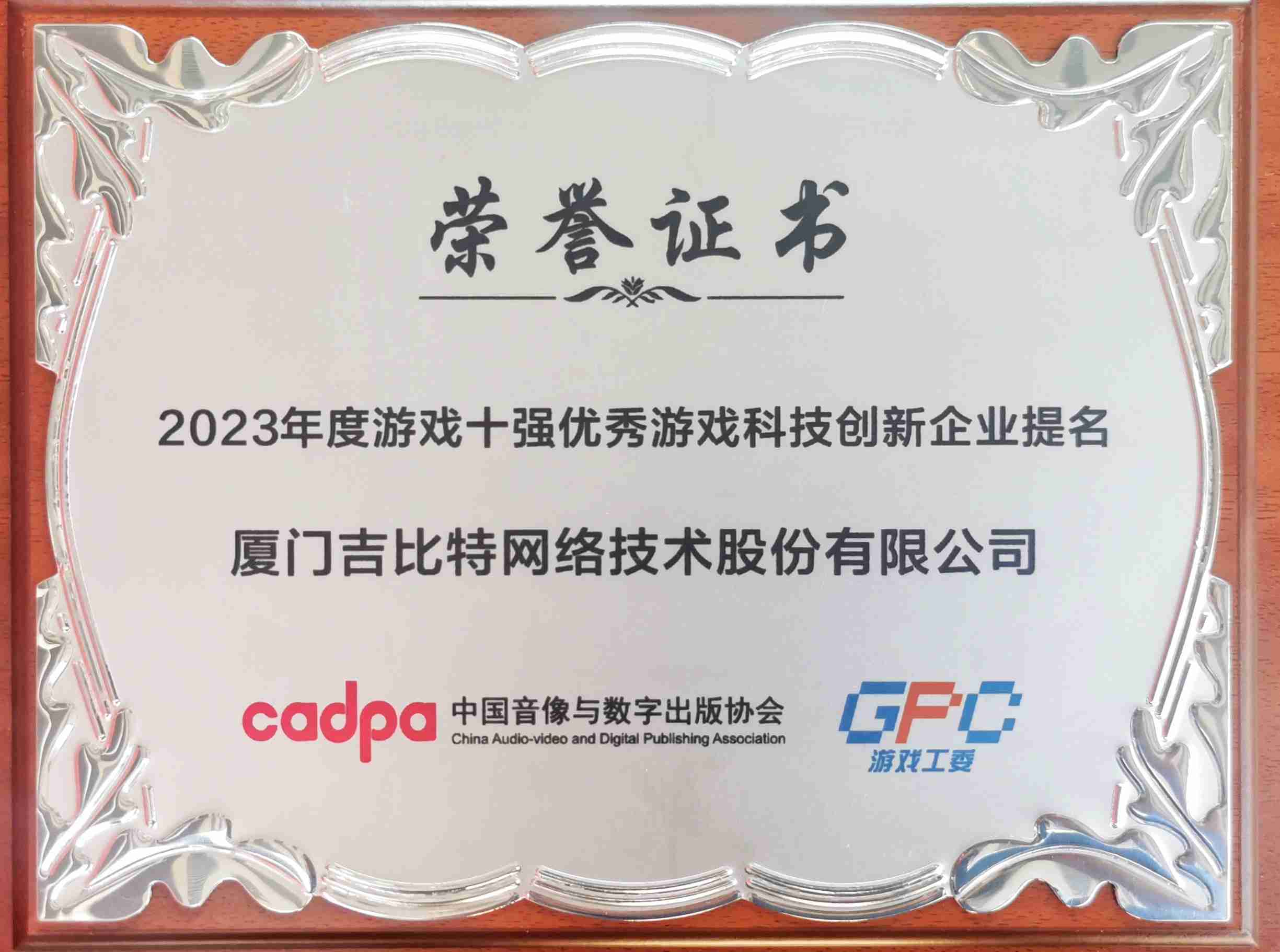 12月14日,,,由中国音像与数字出版协会主办,,,,中国音数协游戏工委、、中国游戏产业研究院承办的“2023游戏十强”评选结果正式发布。。。“游戏十强”在我国游戏产业界享有“中国第九艺术封神榜”美誉,,其评选秉承公开、、、公平、、、公正的原则,,,,因其代表性、、、影响力、、、、公信力被誉为中国游戏产业最高奖项。。。继2022年度入围后,,JIUYOU.COM今年再次获得“优秀游戏科技创新企业”提名,,研发创新实力获得肯定。。